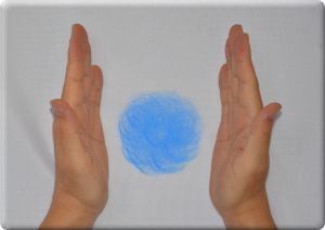 丸い形にするのは簡単です。図のようなボールにしてから、キャッチボールのように向かい側に送ることができます。手を広げても大丈夫です。ボールを取りこぼすことは絶対にありません。エネルギーは意図に従うのですから。